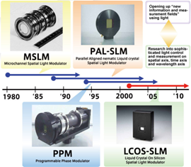 從早期的鐵電物質(zhì)和扭曲向列液晶結(jié)構(gòu)開(kāi)始,到利用光電尋址。濱松的中央研究所和固體事業(yè)部致力于空間光調(diào)制技術(shù)已有30多年的歷史了。其空間光調(diào)制器目前主要在高端市場(chǎng)中,以高線性度、高光利用率、高衍射效率等性能著稱。