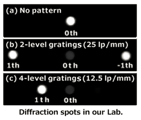 (b)加載2-level光柵,空間分辨率為25線對(duì)/mm,圖中為±1級(jí)光及0級(jí)光。
