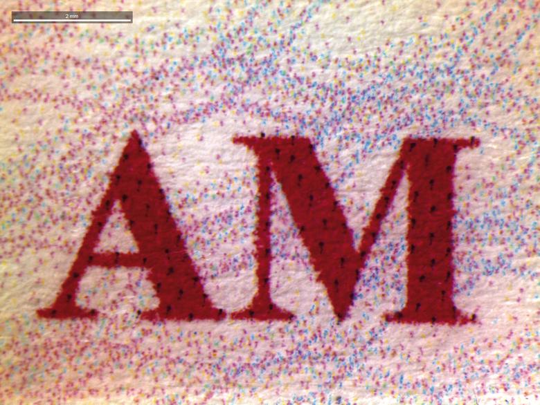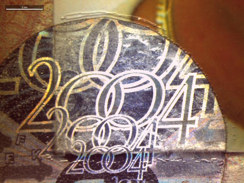 “體視顯微鏡匯聚了出色的照明和 3D 視圖效果,這些對(duì)于檢查文件表面結(jié)構(gòu)的最微小細(xì)節(jié)是至關(guān)重要的。更高超的造假細(xì)節(jié),只能通過顯微鏡才能觀察出來,例如,嘗試模仿激光雕刻、凹印或凸版印刷元素,或者必須后來添加芯片、全息圖或序號(hào)等的拼接圖。有些地方,比如,在極小線性印刷模型邊緣、過渡的位置,或造紙纖維方向上,往往存在著偏差,”Fischer 解釋道。
