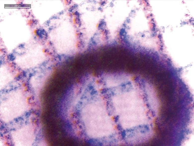 圖 2:隨后插入全息圖,在顯微鏡之下可以清晰查看圖像邊緣。 |