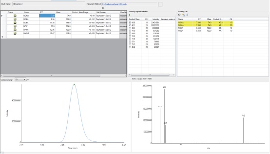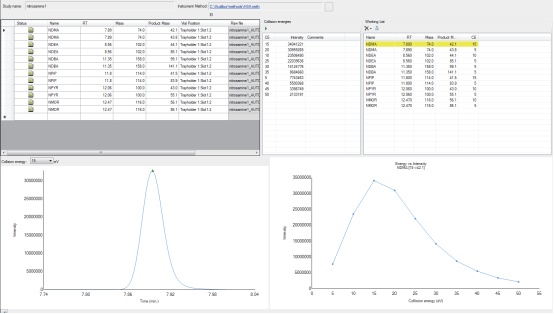 圖2. AutoSRM 對所有亞硝胺一級離子進(jìn)行碰撞能優(yōu)化
