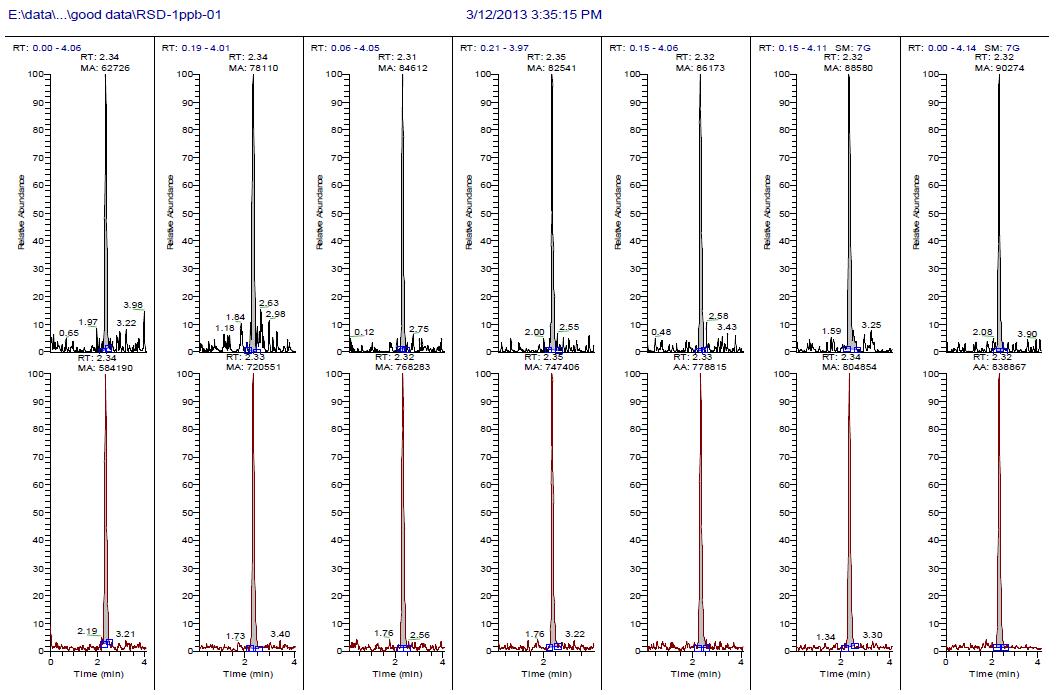 圖3. 平行進(jìn)樣7 針的色譜圖