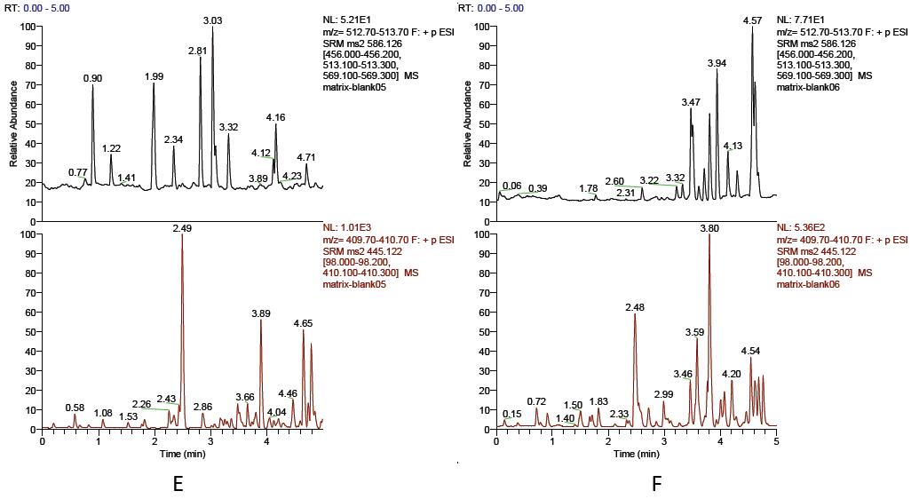 (A-F):6個不同來源的空白血漿的色譜圖;