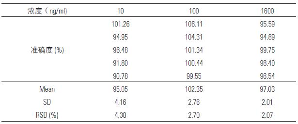 表6. 血漿中替加環(huán)素準(zhǔn)確度(n=5)