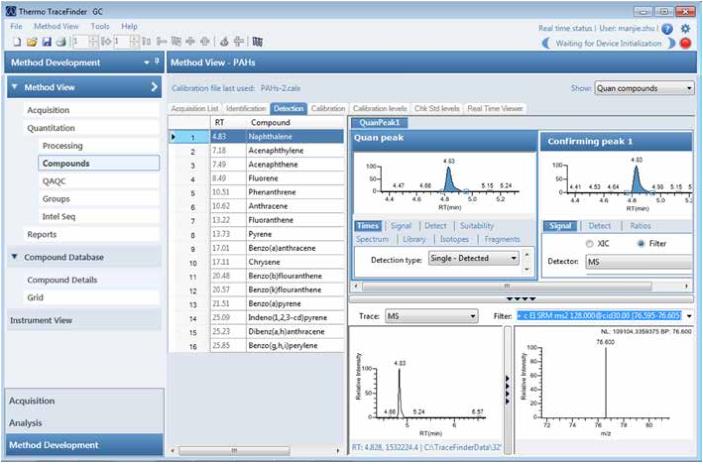 • 最新的 TraceFinder 軟件,提供最新的技術(shù)平臺,界面友好的色譜分析軟件,可以直接調(diào)用數(shù)據(jù)庫信息自動建立數(shù)據(jù)處理方法及進樣方法;