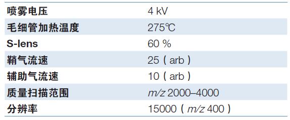 表 2. 單抗分子質(zhì)量測(cè)定的質(zhì)譜分析條件
