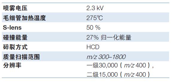 質(zhì)譜儀器:LTQ-Orbitrap Elite(賽默飛世爾科技,美國);