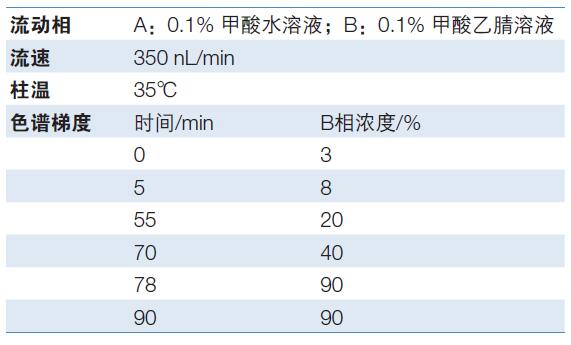 色譜柱:Nano 色譜柱(C18,75μm × 150 mm,2 μm,100Å)(賽默飛世爾科技,美國);