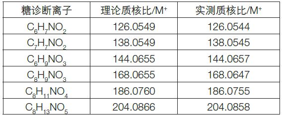 由于采用了高分辨、高精度的 LTQ-Orbitrap Elite 質(zhì)譜,糖診斷離子的質(zhì)量偏差都在 1 ppm 以內(nèi),除了個(gè)別碎片離子外,基本所有的糖肽碎片離子的質(zhì)量偏差也都在 1 ppm 以內(nèi),由此可以判斷該糖肽碎片離子的歸屬準(zhǔn)確、可靠。