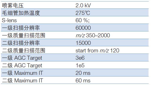表 2. 二硫鍵分析的質(zhì)譜條件