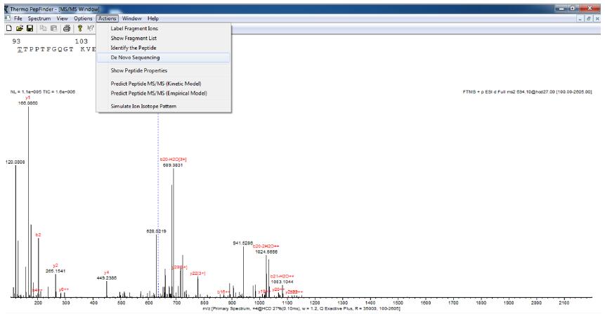 圖5 對一張MS/MS譜圖進行De Novo Sequencing