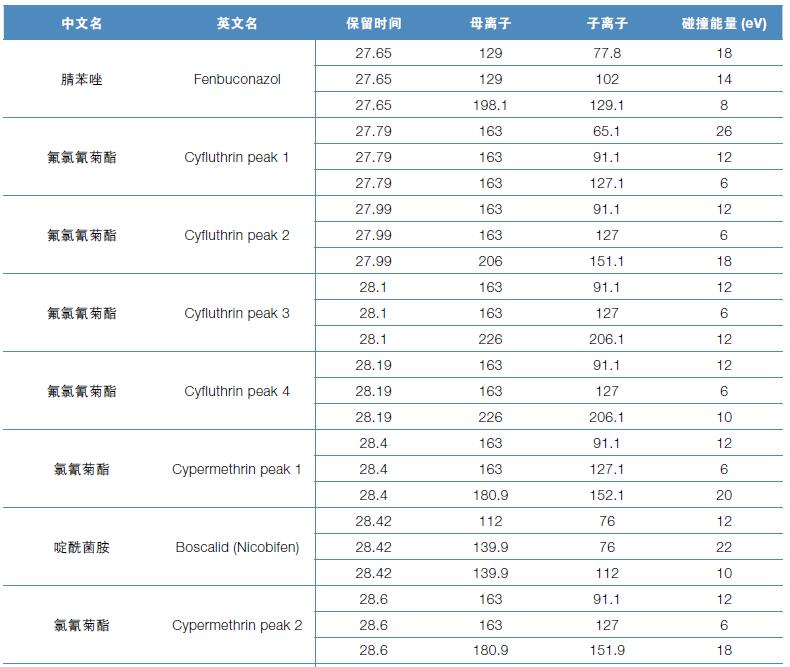 色譜柱:TR-Pesticide II 30m*0.25mm*0.25 μm 毛細(xì)管色譜柱;