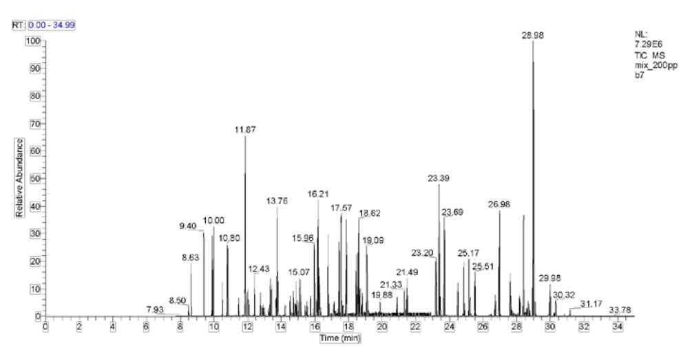 圖 1:標(biāo)準(zhǔn)溶液色譜圖(200 μg/L)