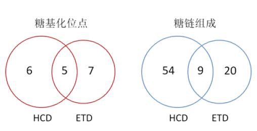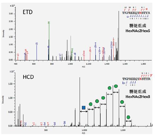圖4. HCD/ETD碎裂獲得的糖肽解析結(jié)果比較
