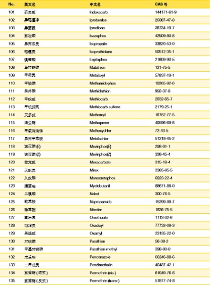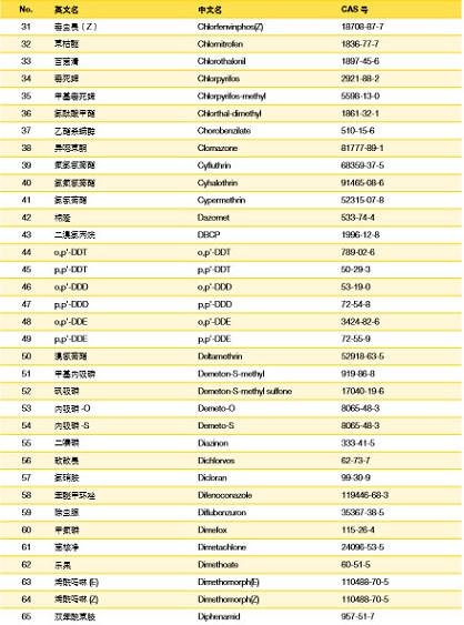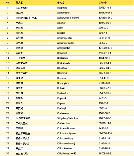 表 A.1 168 種農(nóng)藥及 2 種內(nèi)標(biāo)物質(zhì)的中英文名稱及 CAS 號(hào)