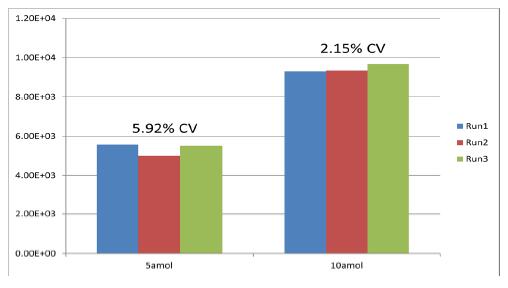 圖6. 肽段SSAAPPPPPR* 在amol 水平重復(fù)性