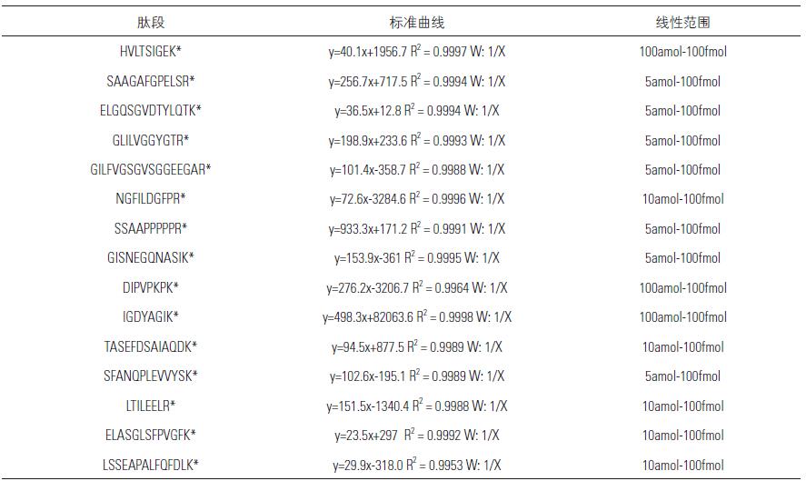 表2. 15 條肽段標(biāo)曲和線性范圍