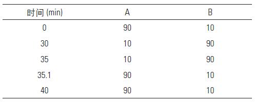 流動相梯度:A 為水相:0.1% 甲酸水,B 為有機相:乙腈