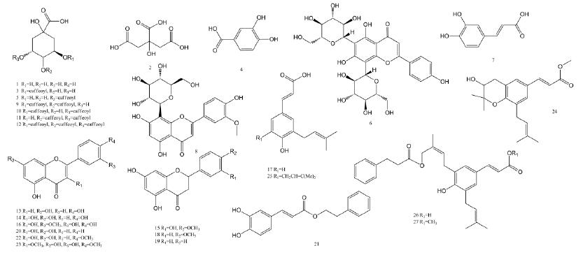 圖8. 巴西蜂膠樣品中鑒定出的27 個成分的結(jié)構(gòu)式。