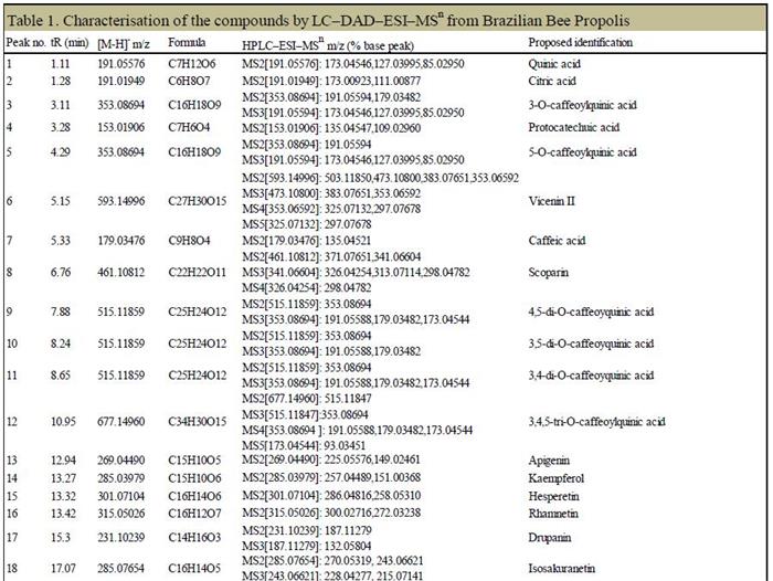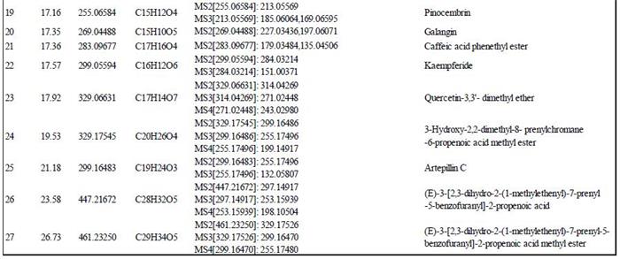 2.2 巴西蜂膠樣品中化學(xué)成分的鑒定