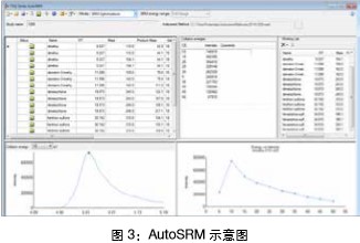 AutoSRM 顧名思義就是可以自動優(yōu)化化合物SRM 離子對的軟件,該軟件通過選擇母離子,選擇子離子,自動優(yōu)化碰撞能量這三個步驟可以完成方法優(yōu)化,極大得簡化了常規(guī)串接氣質