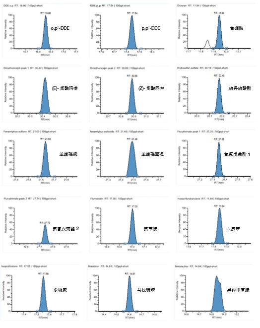 選取部分化合物在 100ppt 時的色譜圖: