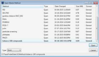 想要快速建立方法時,直接拷貝方法包中的文件夾到 C:\ TraceFinderData\32\Methods 中,方法就可以在 TraceFinder 軟件中打開,這個方法包括數據處理方法和進樣方法。
