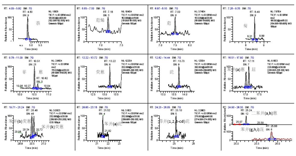 圖2. 0.1 μg/L 16 種多環(huán)芳烴的色譜圖