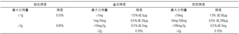 有機(jī)雜質(zhì)的限度確定:原研藥一般已經(jīng)對雜質(zhì)的安全性做了全面的研究,故對于仿制藥,需要與原研藥進(jìn)行充分的雜質(zhì)比對和研究,分析雜質(zhì)的種類和含量,并結(jié)合原研藥的質(zhì)量標(biāo)準(zhǔn),對雜質(zhì)進(jìn)行控制,如果因?yàn)楣に嚭吞幏降牟煌瑢?dǎo)致仿制藥的雜質(zhì)與原研藥不同,則仿制藥中的新雜質(zhì)需要在表1-1 和1-2 的限度以內(nèi),如果新雜質(zhì)超出表中限度,或者仿制藥的雜質(zhì)含量明顯高于原研產(chǎn)品,則需要通過優(yōu)化處方和工藝,使雜質(zhì)的含量降到規(guī)定的質(zhì)控限度以內(nèi),如果無法降到規(guī)定限度,則需要對超過限度的雜質(zhì)進(jìn)行相應(yīng)的安全性研究。
