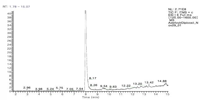 圖1.阿德福韋酯的質(zhì)譜總離子流圖