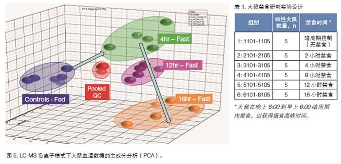 采用Thermo ScientificTM SIEVETM 軟件的組分提取 (Component Extraction, CE)數(shù)據(jù)處理算法分析數(shù)據(jù),測定大鼠禁食產(chǎn)生的代謝效應(yīng)。