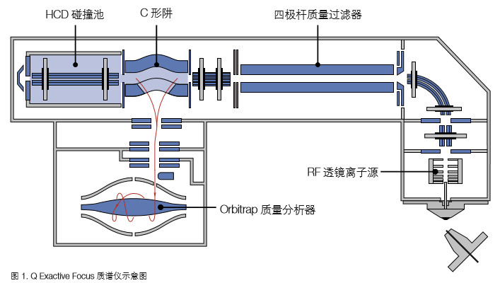 采用Thermo ScientificTM Q ExactiveTM Focus Hybrid QuadrupoleOrbitrap 質(zhì)譜儀(圖 1)分別在正離子和負(fù)離子模式下采集得到高 分辨率準(zhǔn)確質(zhì)量數(shù)(HRAM)數(shù)據(jù),分辨率為 70,000(FWHM)。