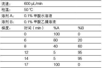 采用Thermo ScientificTM Open AccelaTM 1250 UHPLC 系統(tǒng) 和 Thermo ScientificTM Hypersil GOLDTM aQ 色譜柱(150 × 2.1 mm, 1.9 µm粒徑)進(jìn)行色譜分離。進(jìn)樣量為3 µL。色譜條件如下:
