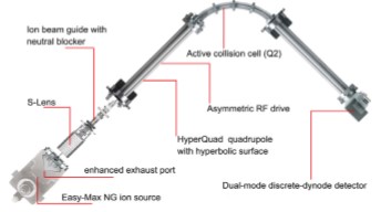 TSQ Endura LC-MS/MS是基于主動(dòng)離子管控技術(shù)(Active Ion Management,AIMTM)開發(fā)的全新一代液質(zhì)聯(lián)用系統(tǒng),它 通過S-lens射頻透鏡組、中性粒子擋桿、HyperQuad四極桿、 主動(dòng)離子碰撞池、雙模式離散打拿極檢測(cè)器等集成創(chuàng)新(圖1),使得儀器對(duì)離子聚焦、傳輸、隔離、碰撞與檢測(cè)等離子操控 環(huán)節(jié)得以實(shí)現(xiàn)了全新突破,賦予了其領(lǐng)先的靈敏度、高達(dá) 500 SRM/s 的掃描速度與出色的穩(wěn)健性,從而能全面滿足復(fù)雜基質(zhì)中多農(nóng)殘高通量檢測(cè)的各種技術(shù)挑戰(zhàn),在食品安全領(lǐng)域中具有廣闊的應(yīng)用空間與使用價(jià)值。