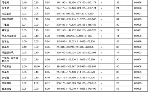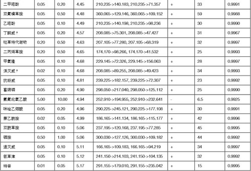 ‡ :前一個(gè)子離子為定量離子,后一個(gè)為定性確證子離子 1