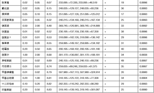 圖 7 TraceFinder 農(nóng)殘檢測(cè)數(shù)據(jù)處理結(jié)果的典型界面(Compound View)