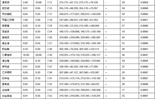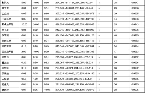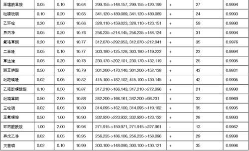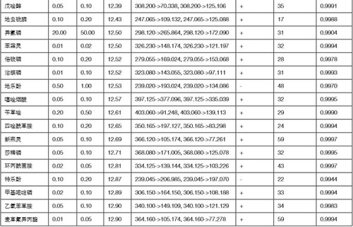 表 1 菜椒基質(zhì)中 440 種農(nóng)藥的定量結(jié)果