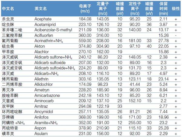 液相色譜-串聯(lián)質(zhì)譜法定量分析和定性確認食品中400 多種農(nóng)藥殘留