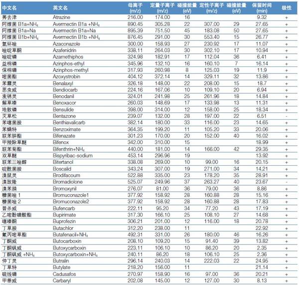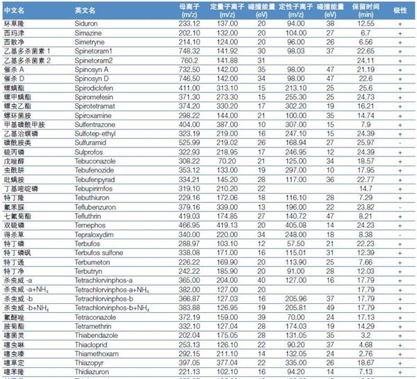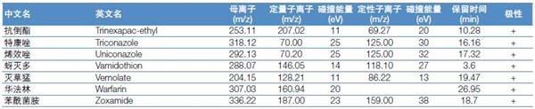 依照相關(guān)標準規(guī)定,對于水果、蔬菜等植物源樣品中多種農(nóng)藥殘留進行檢測是在常規(guī)食品安全最為常見檢測方法之一。本文參考GB/T 20769-2008 開發(fā)了快速檢測多種農(nóng)藥殘留的儀器方法,外標法定量。