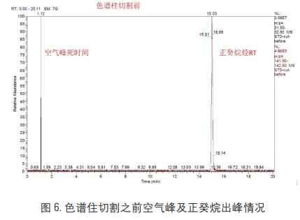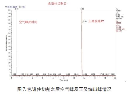 ④ 柱子切割后, 使用同一恒溫程序再次運(yùn)行該正構(gòu)烷烴, 記錄其 RT 及空氣峰死時間( Void time);