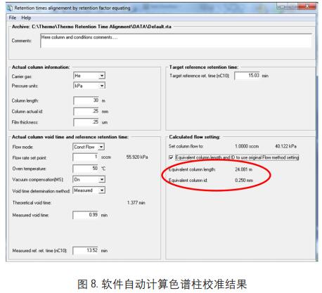 將以上各參數(shù)輸入 RT 校準(zhǔn)軟件( 見圖 1) 以計(jì)算最終柱子虛擬參數(shù)并將其輸入 GC 面板。