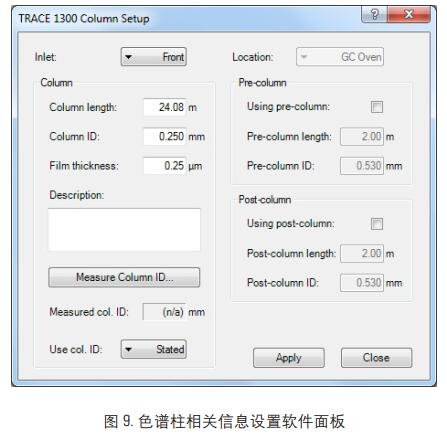 將上述軟件計(jì)算結(jié)果通過 GC 色譜柱設(shè)置軟件圖 9, 輸入到 GC 系統(tǒng)里, 進(jìn)行化合物的保留時間校正。
