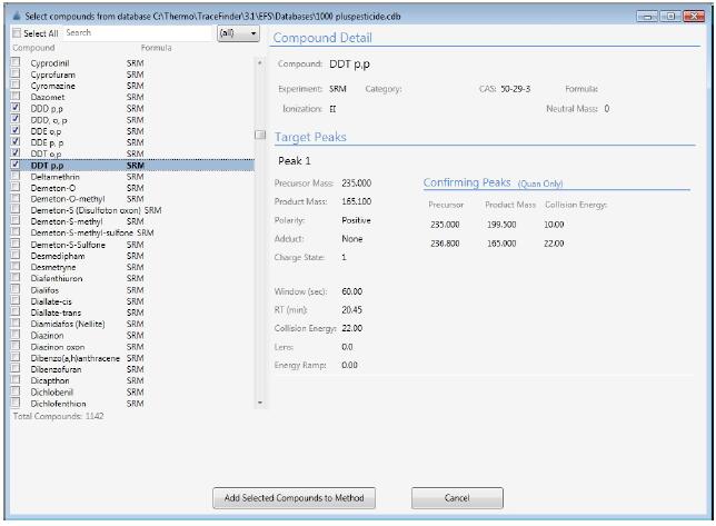 圖1:從TraceFinder 自帶的數(shù)據(jù)庫(kù)中選取待檢測(cè)化合物