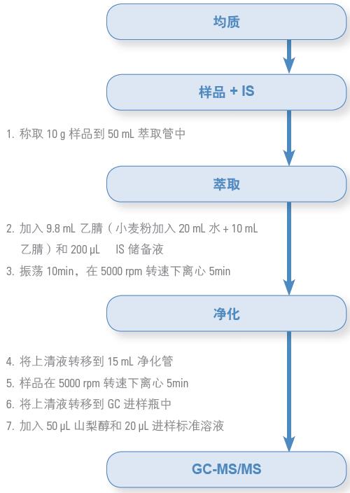 取出部分事先均質(zhì)好的樣品(對一些不穩(wěn)定的化合物,建議在低溫下研磨),采用標(biāo)準(zhǔn)的QuEChERS 方法(萃取和凈化)進行樣品前處理,然后進樣到TSQ 8000 Triple-Stage Quadrupole GC-MS/MS 系統(tǒng)5,6。
