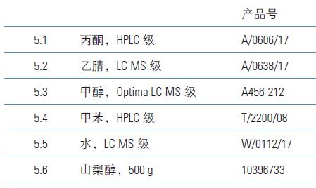在體積比為70/30% 的乙腈/ 水溶液中配制,進樣前加入樣品中。進樣前加入保護劑溶液的目的是防止分析物的交互反應(yīng)和進樣過程中的損失8。