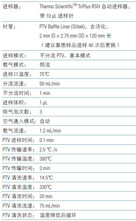 進樣器參數(shù)設(shè)置如下: