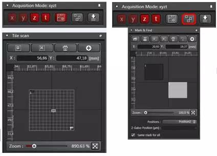 圖6 自動(dòng)拼圖(左)和多點(diǎn)成像(右)模式。