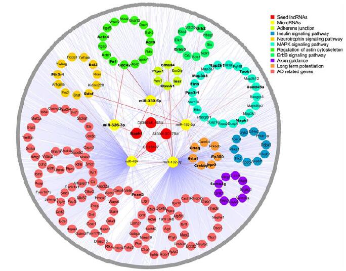 圖3: APPswe/PS1 ∆ E9小鼠的競(jìng)爭(zhēng)性內(nèi)源RNA網(wǎng)絡(luò)圖。