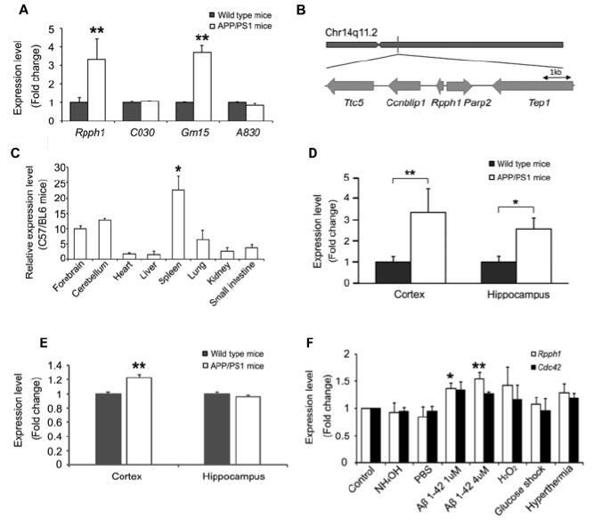 Rpph1在APPswe/PS1 ∆ E9小鼠中表達(dá)量升高