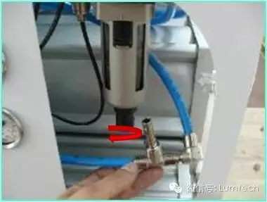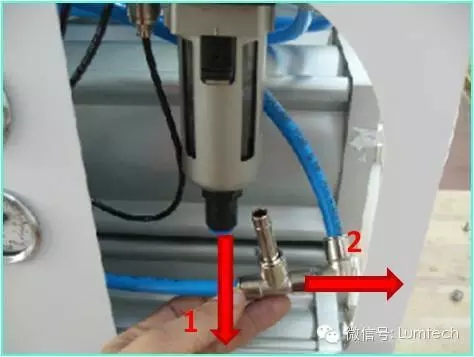 1.拆下過濾器外部連接管。向上按住街頭藍(lán)色部分,拔出連接管。